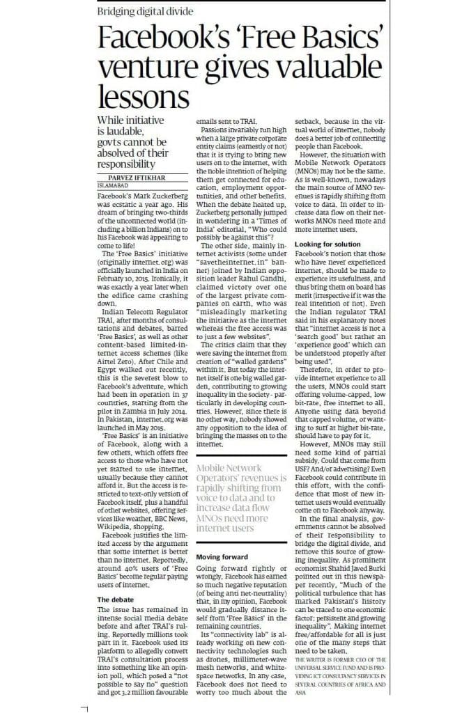 The Express Tribune – Facebook’s ‘Free Basics’ venture gives valuable lessons, 21-Feb-2016