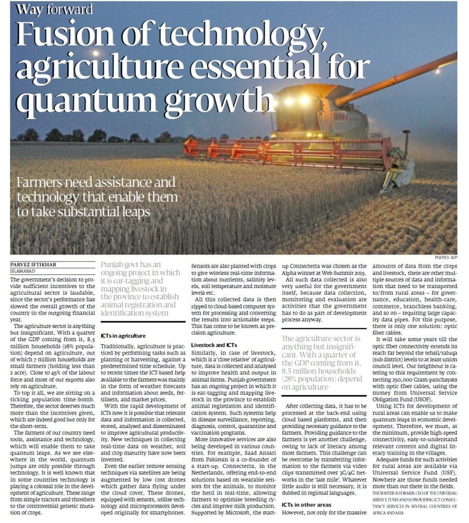 The Express Tribune – Way forward Fusion of technology, agriculture essential for quantum growth 12-Jun-2016