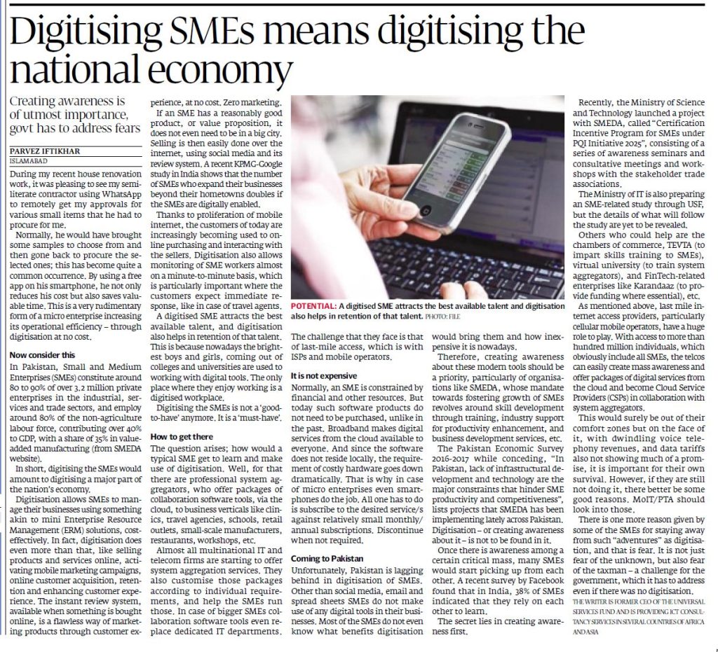 The Express Tribune: Digitising SMEs means digitising the national economy, 26 June 2017