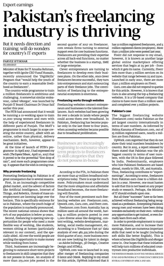 The Express Tribune: Pakistan’s freelancing industry is thriving, 30 October 2017