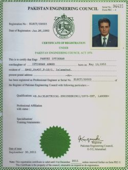 Bachelor of Science in Engineering, Electrical Engineering – UET Lahore 1976