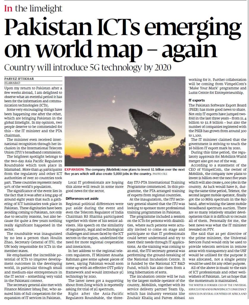 The Express Tribune – In the limelight Pakistan ICTs emerging on worldmap -again, 31-Jul-2016