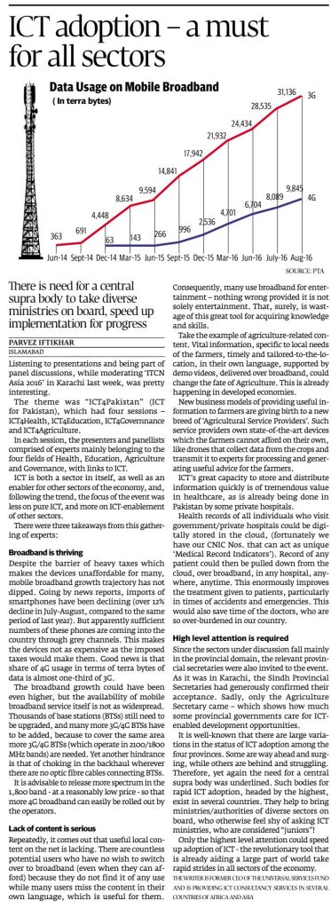 The Express Tribune – ICT adoption – a must for all sectors, 03-Oct-2016