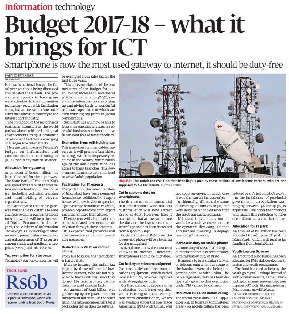 The Express Tribune: Budget 2017-18 – what it brings for ICT, 29 May 2017