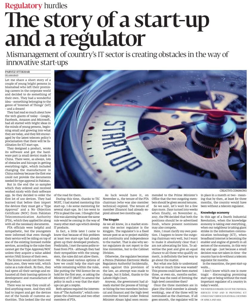 The Express Tribune: Regulatory hurdles – The story of a start-up and a regulator, 25 December 2017