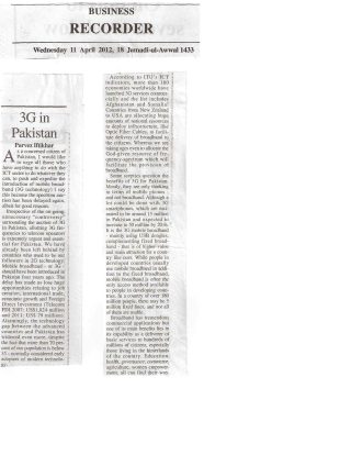 Read MoreBusiness Recorder – 3G Spectrum Auction: Don’t delay- Do it now!