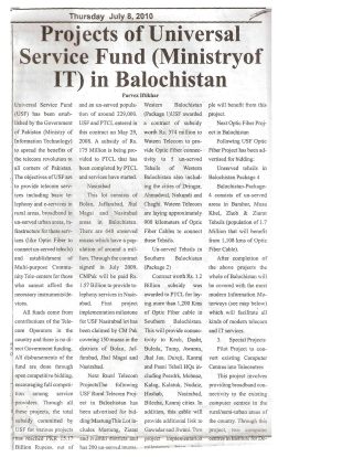 Balochistan Times – Projects of Universal Service Fund (Ministry of IT) in Balochistan